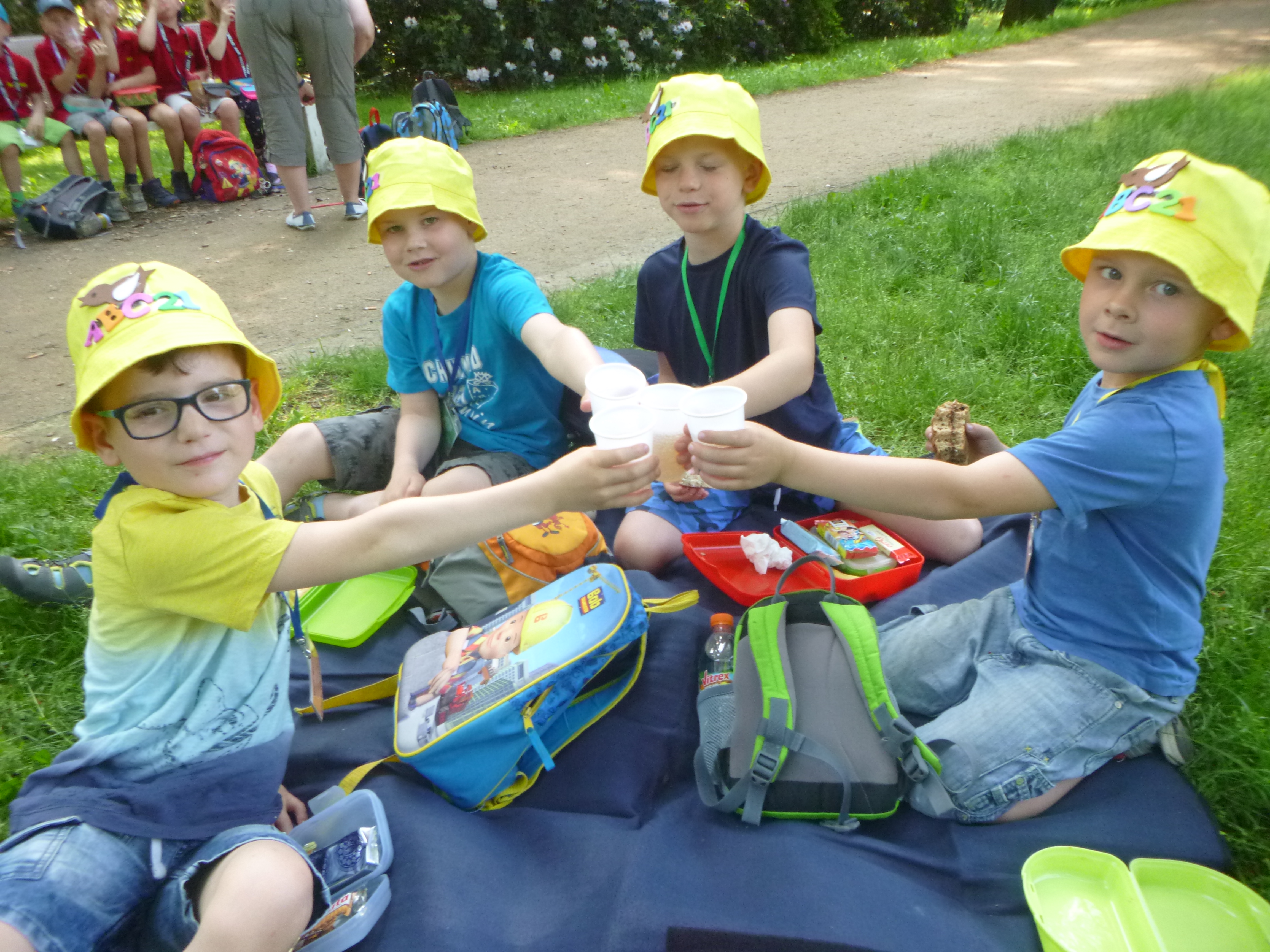 Am Freitag, 11.Juni 2021, trafen sich die Lindenauer und Frauendorfer Vorschulkinder am Ortrander Bahnhof. Gemeinsam ging es auf Abschlussfahrt – mit dem Zug nach Senftenberg und zu Fuß dann weiter zum Senftenberger Tierpark. Einen Zwischenhalt machten wir bei Daniel Quinger, "Seenland Motors". Wir konnten unseren Durst stillen, die Werkstatt besichtigen und uns sogar auf ein Rennmotorrad setzen. Eine Überraschung gab es auch noch für alle. Danke an Arwin`s Papa, D.Quinger. Bevor wir den Tierpark erreichten, haben wir noch im Schlosspark gepicknickt und mit Kindersekt angestoßen. Im Tierpark gab es jede Menge zu entdecken. Die neue Außenanlage für die Affen hatte es uns gleich angetan. Den Affen so nah zu begegnen war richtig cool. Sehr interessant fanden wir vor allem die Erdmännchen, Stachelschweine, Hasen und Meerschweinchen, Schafe, Ziegen, den Pfau, der rumstolzierte, und noch viele andere Tiere. Toll fanden alle, dass wir direkt in die Futterküche schauen konnten, in der Futter für die Tiere vorbereitet wurde. Was die Tiere so alles zu fressen bekommen, war sehr wissenswert. Anschließend hatten wir noch etwas Zeit, um den Spielplatz am See zu erkunden.Nach unserem Mittags-Picknick konnten wir die Spielgeräte ausprobieren. Und bevor es wieder nach Hause ging kühlten wir unsere Füße im Senftenberger See. Mit ganz vielen Eindrücken und erfrischt machten wir uns auf den Heimweg.